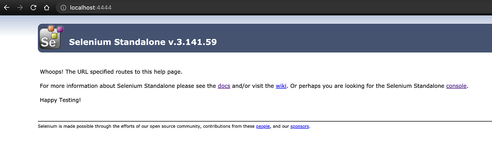 Now, you should see Selenium Standalone running on http://localhost:4444/