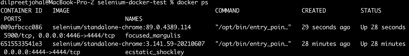 Another advantage that we get with Docker is that we can have multiple Chrome versions set up which we can use to execute our tests. For example, I can have Chrome v91 running on port 4444 as well as Chrome v81 running on port 4446 and can execute the tests on both.
