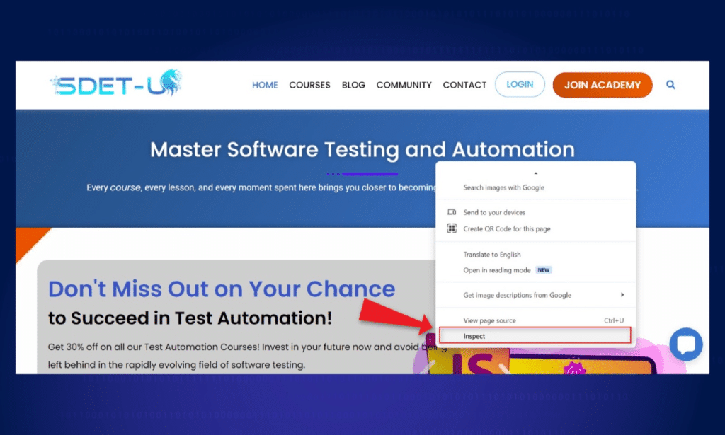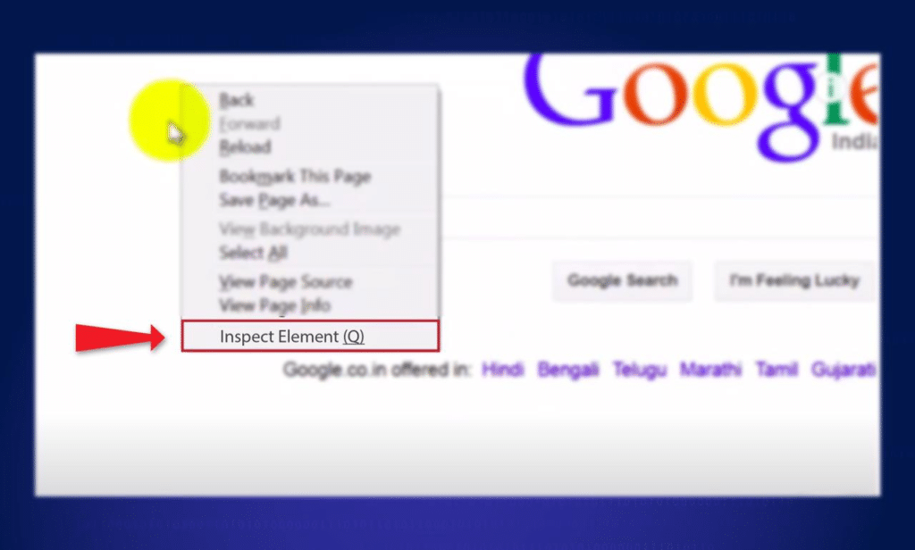 - Right-click on any element on a webpage and select "Inspect" from the context menu bar.