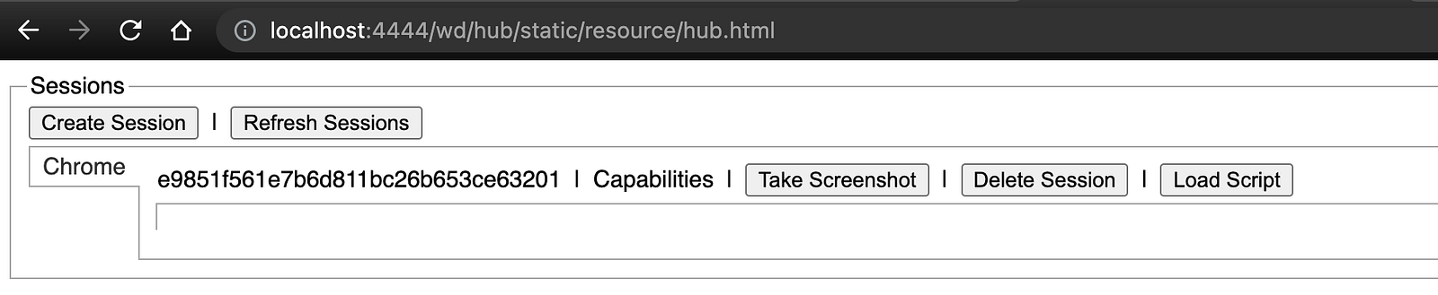 Let’s run the tests now, I will do that by doing node test.js , then head over to http://localhost:4444/wd/hub/static/resource/hub.html and you will see a Chrome session being created that is running inside your Docker container.