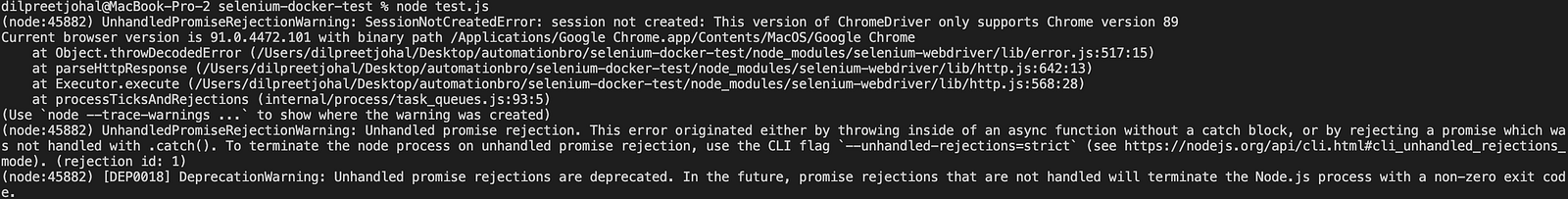 If you have been running your tests without Docker, you might have seen this kind of error before — session not created: This version of ChromeDriver only supports Chrome version 89